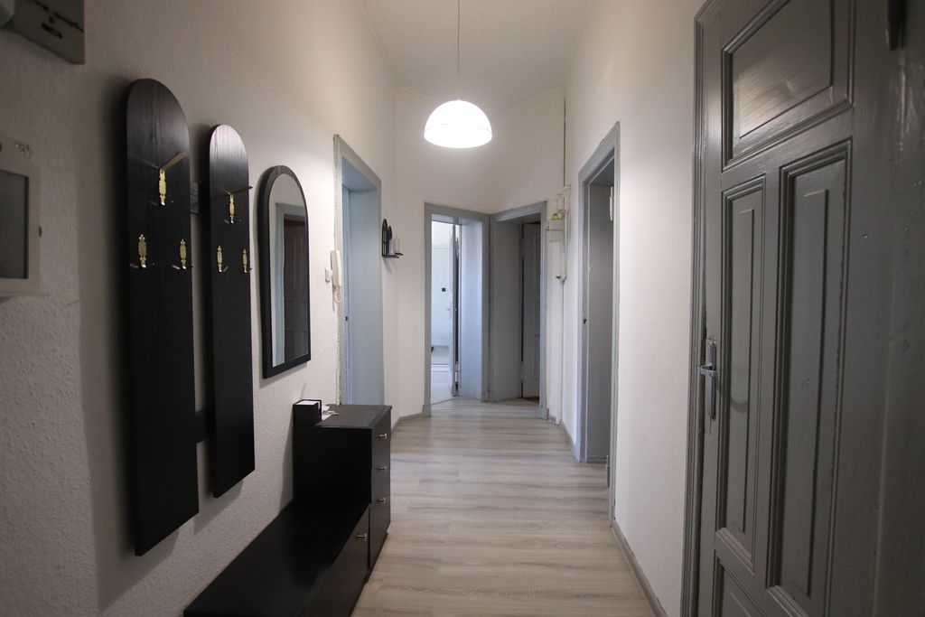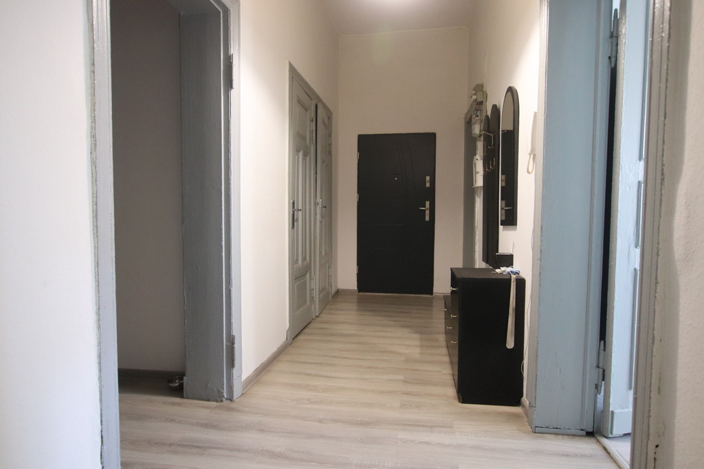 Ogłoszenie dotyczy przestronnego mieszkania o powierzchni 110 metrów kwadratowych, usytuowanego na pierwszym piętrze odnowionej kamienicy. Klatka schodowa przeszła remont, co dodatkowo podnosi atrakcyjność oferty. Mieszkanie składa się z czterech pokoi, z których jeden posiada dostęp do balkonu, co zapewnia dodatkową przestrzeń i możliwość relaksu na świeżym powietrzu. Pokoje są rozkładowe, a duża kuchnia z oknem stwarza komfortowe warunki do codziennego gotowania i spożywania posiłków.