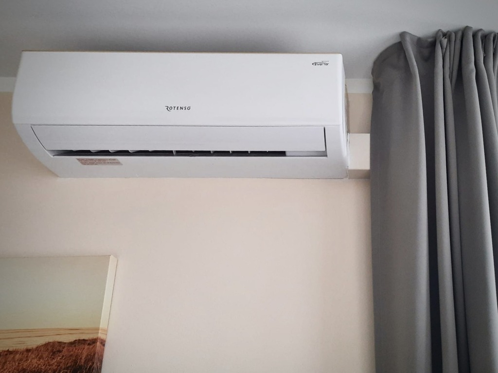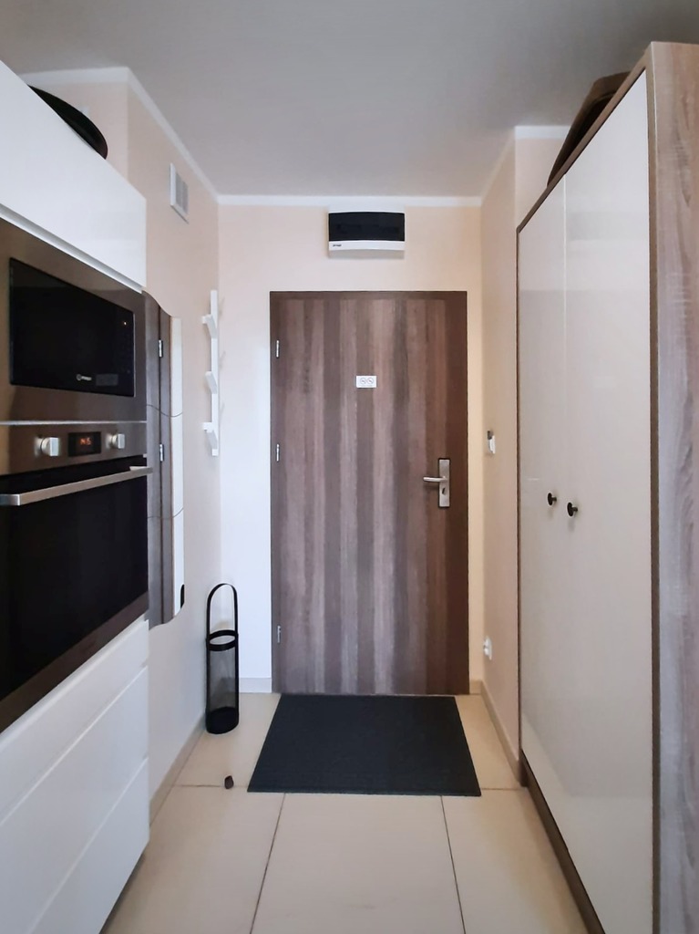 Mieszkanie posiada udogodnienia w postaci klimatyzacji oraz bliskości do tarasu znajdującego się na dachu obiektu, do korzystania dla lokatorów.