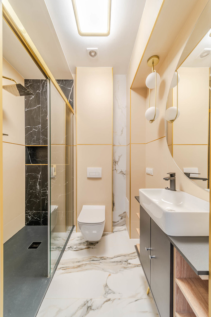 - łazienki z toaletą oraz prysznicem (3,3 m2).