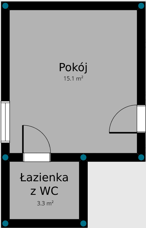 - pokoju (15,1 m2);