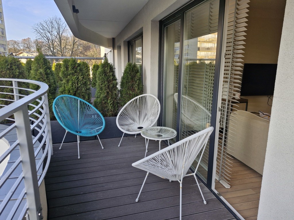 Apartament posiada obszerny taras z którego możemy usłyszeć śpiew mew. Pośredniczka prezentująca powyższy apartament słyszała na własne uszy i zaświadcza,że jest to prawda.