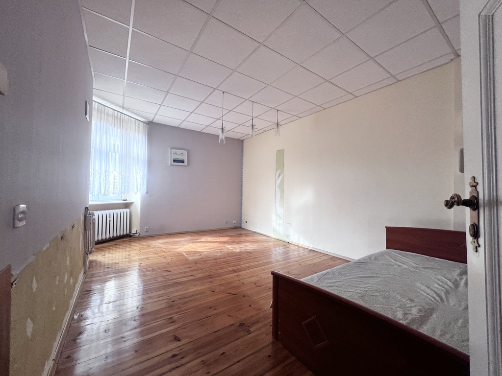 - Sypialnia (21 m²): Zlokalizowana od strony oficyny, o wymiarach 3,62 x 5,82 m, z podwieszanym sufitem. Przestronność tego pokoju umożliwia wydzielenie dodatkowej przestrzeni, takiej jak garderoba     lub podział na dwa mniejsze pokoje, zapewniając dodatkową funkcjonalność i elastyczność w aranżacji przestrzeni.