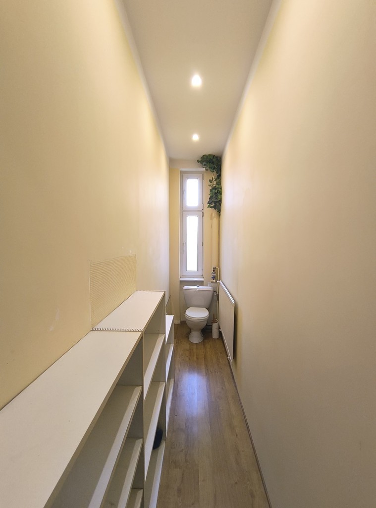 - Przedpokój (ok.5,23m²):obniżony sufit, z pojemną szafą w zabudowie.