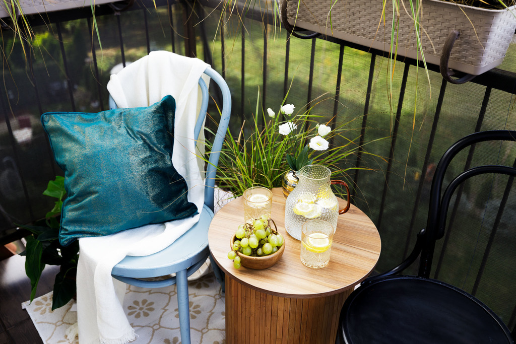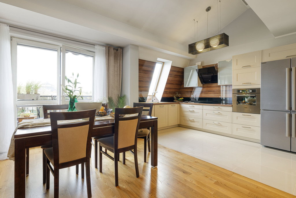 -salon z otwarty kuchnią z wyjściem na balkon