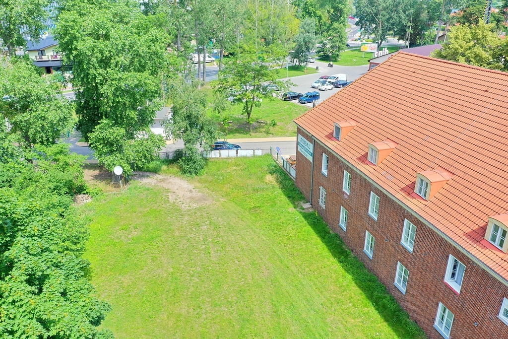 Wjazd na działkę odbywa się z drogi publicznej urządzonej z kostki brukowej, najbliższe sąsiedztwo to zabudowa mieszkaniowa, apartamentowa oraz pensjonatowa. Okolica cicha i spokojna, obiekt znajduje się kilka minut od centrum i blisko morza.
