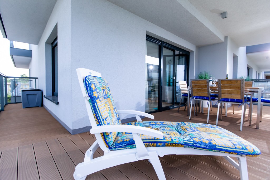 Apartament jest nowocześnie wykończony, z przestronną łazienką oraz kompletnie wyposażonym i umeblowanym aneksem kuchennym .