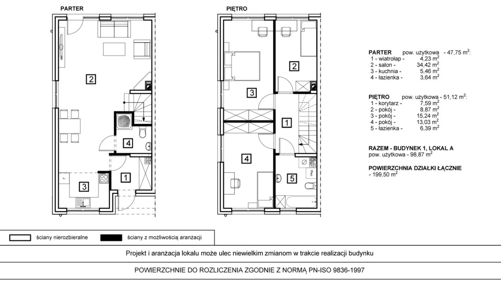 Powierzchnia segmentów około 100m2. Powierzchnie działek od 200m2 do 280m2.