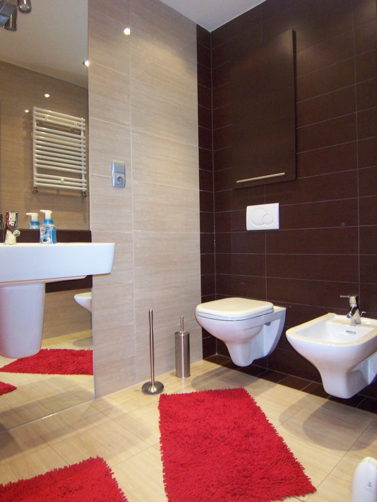 Łazienka z wanną, WC i bidetem w wysokiej jakości glazurze i terakocie.