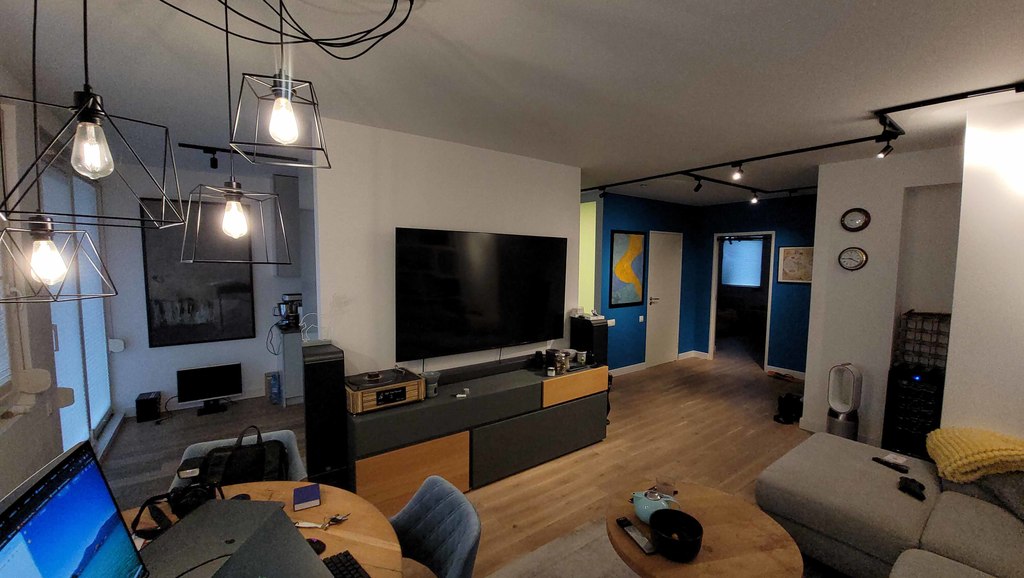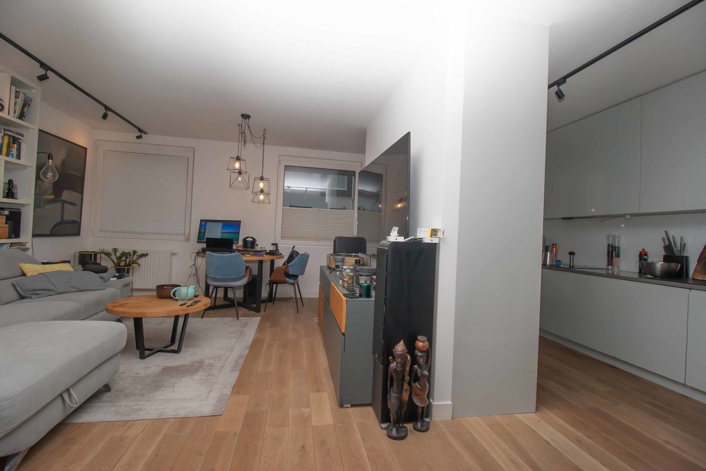 1. Pokój dzienny ( ok 20 m2 ) połączony z widną kuchnią ( ok 12 m2 ) od strony południowej z wyjściem na 40 metrowy ogródek. Kuchnia w zabudowie, osprzęt firmy Samsung - płyta indukcyjna, zmywarka, piekarnik, lodówko - zamrażalka i okap.