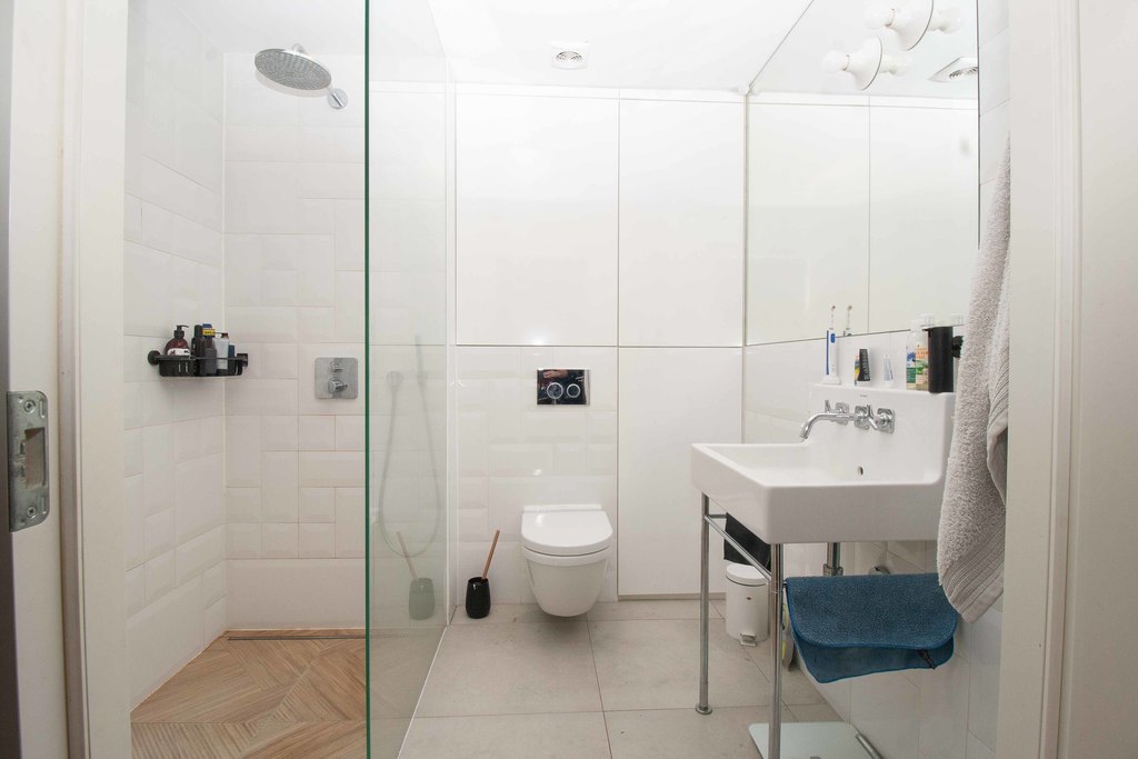 2.Łazienka z WC ( ok. 5 m2 ), glazura i terakota, umywalka i kabina prysznicowa.