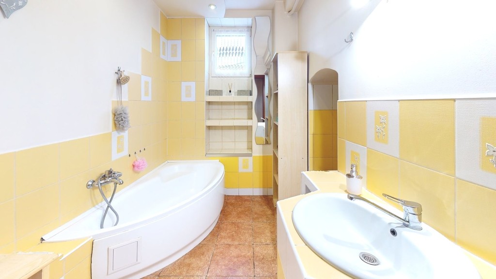 Ta dwurodzinna willa posiada swój niepowtarzalny urok i tradycyjny klimat, część działki przypisana jest tylko do tego mieszkania, a pozostała część jest podzielona umownie pomiędzy dwóch właścicieli.