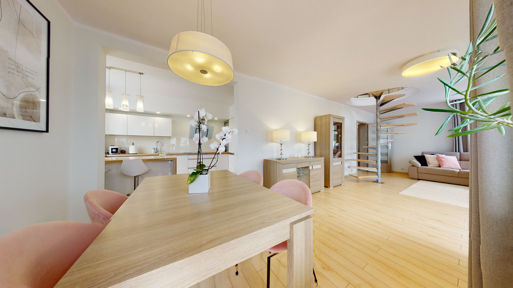 To niezwykle przestronne, dwupoziomowe, czteropokojowe mieszkanie, które znajduje się na urokliwym osiedlu Bukowym. Jego wyjątkowy układ sprawia, że przestrzeń jest inteligentnie wykorzystana, co pozwoli na swobodne funkcjonowanie całej rodziny.