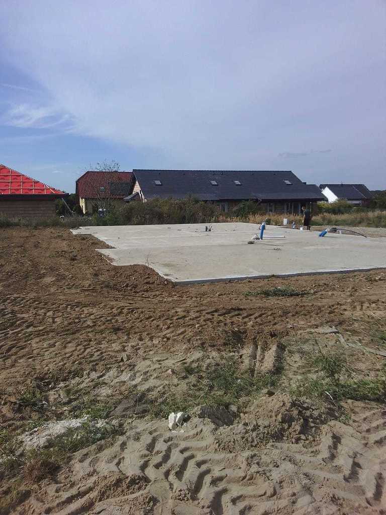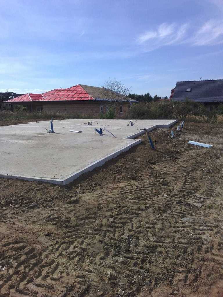 Na terenie są już przyłączone media i wylana płyta fundamentowa.