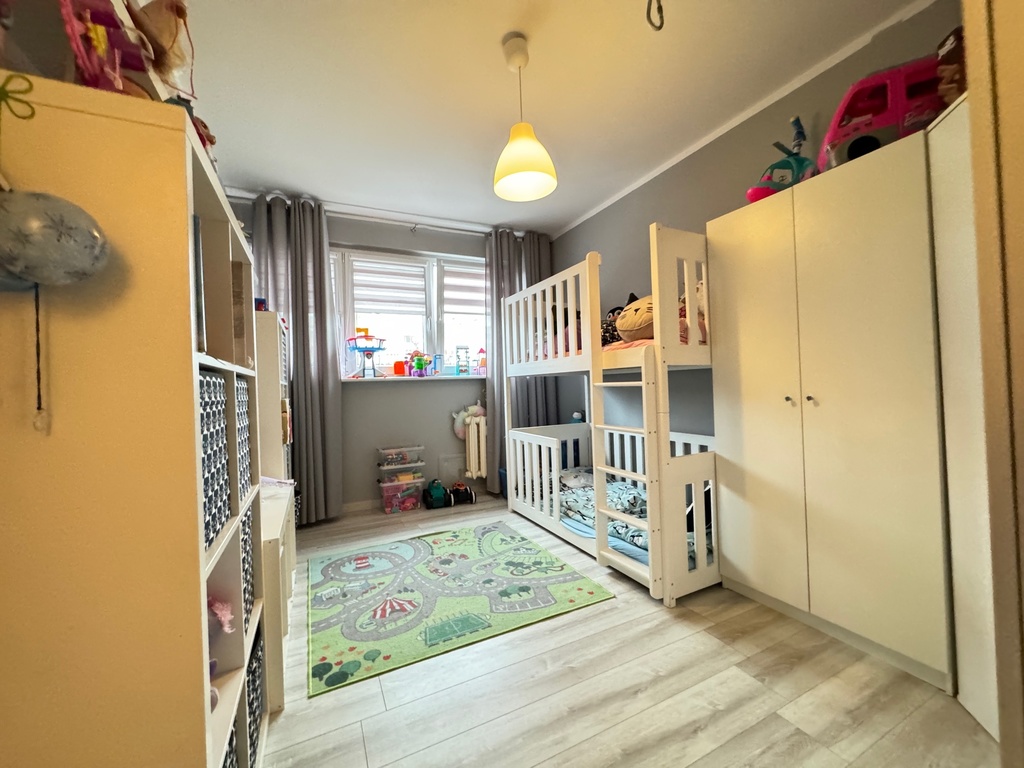 Wyposażenie: kuchnia w zabudowie (wyposażona w kuchenkę gazową i piekarnik Amica, lodówkę LG, zmywarkę Bosch ), korytarz: szafy w zabudowie, pokój dziecięcy -zostanie bez umeblowania, salon: pozostają tylko meble w zestawie, bez stolika kawowego, sofy oraz stołu z krzesłami; sypialnia: pozostaje szafa w zabudowie.