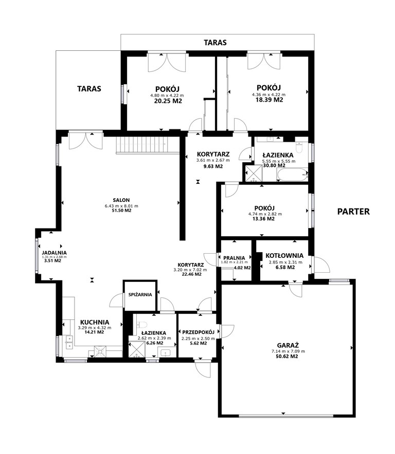 Budowany tradycyjną metodą z betonu komórkowego energooszczędnego Solbet, ten dom to doskonały przykład na to, jak piękno i funkcjonalność można połączyć ze sobą w jedno. Dolny poziom posiada przestronny salon z jadalnią i kuchnią, które stanowią otwartą przestrzeń o niepowtarzalnym charakterze. Dodatkowo na parterze znajduje się gabinet, dwie sypialnie każda z wyjściem na ogród oraz 2 łazienki razem z wc, pralnia, spiżarnia, garaż dwustanowiskowy, kotłownię oraz 9 metrową piwnice. Na poddaszu czeka na nowych właścicieli otwarta 90 metrowa przestrzeń w pełnym wymiarze którą można dowolnie zaaranżować według potrzeb.