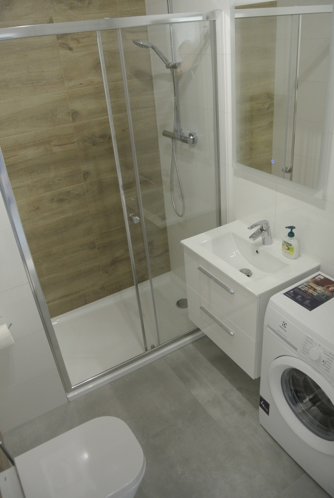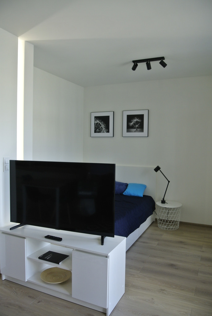 W skład apartamentu wchodzi salon z wydzieloną kuchnią oraz wydzieloną częścią sypialnianą, łazienka z WC, duży prysznic. W pokoju wyjście na duży balkon, okna PCV, drzwi antywłamaniowe.