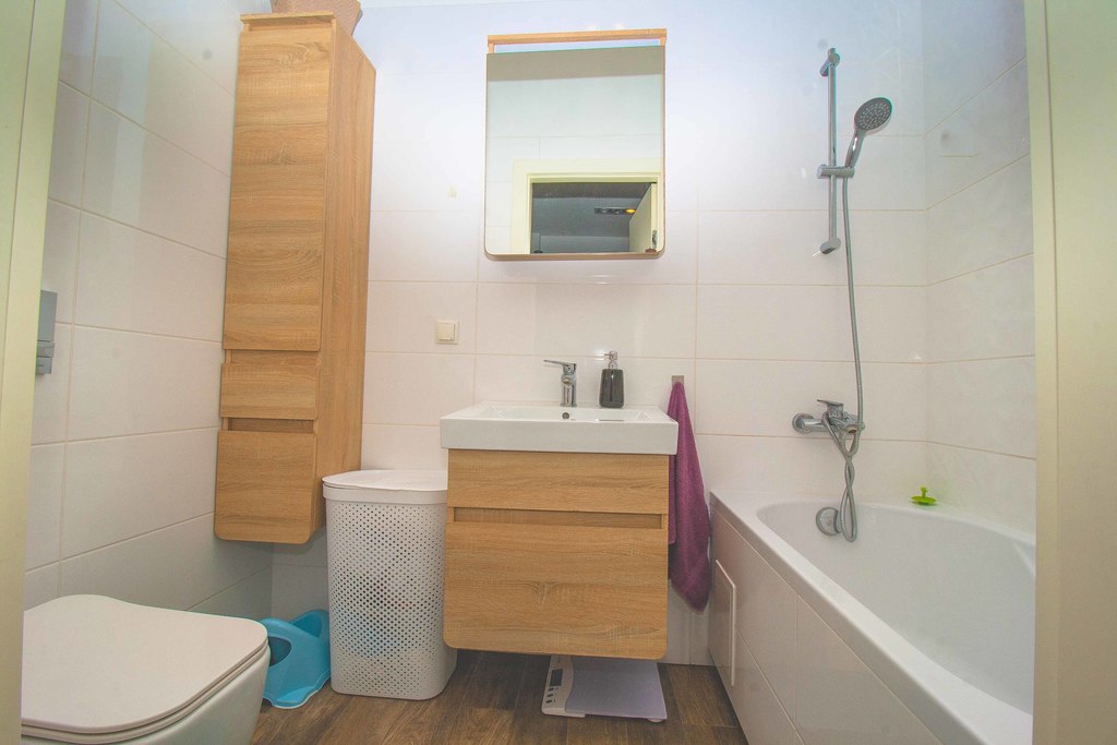 - na podłogach panele, ściany wygładzone i malowane w jasnych tonacjach