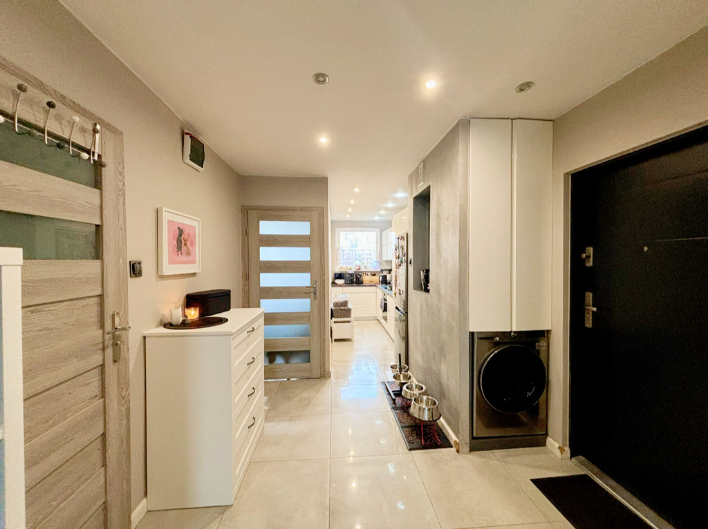Mieszkanie w nowoczesnej aranżacji- spójne kolorystycznie, dwustronne- korzystny układ stron świata.