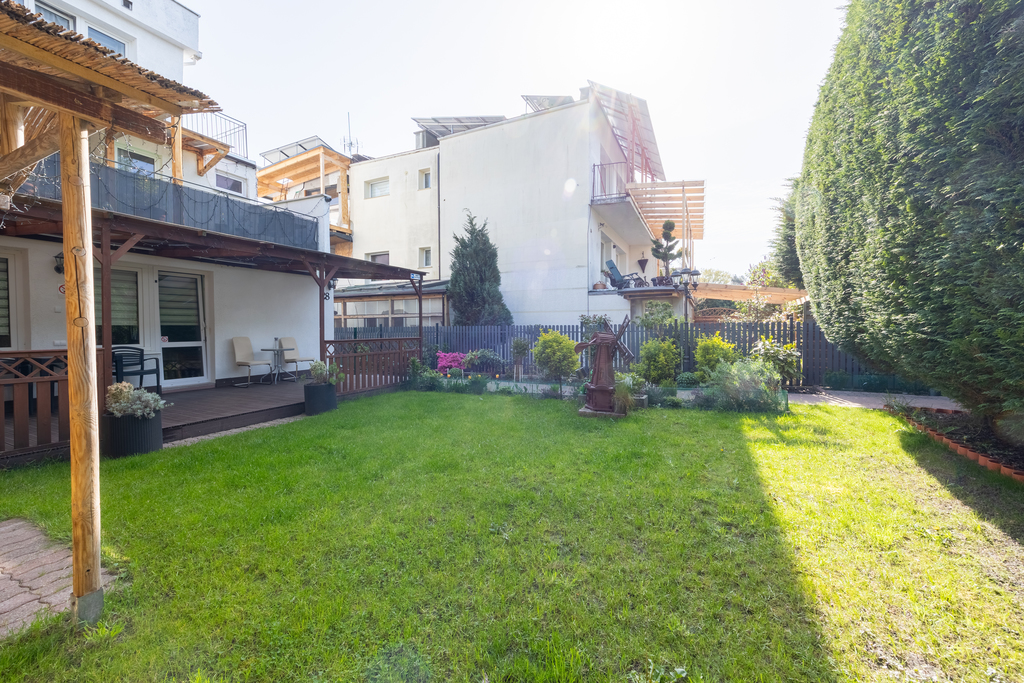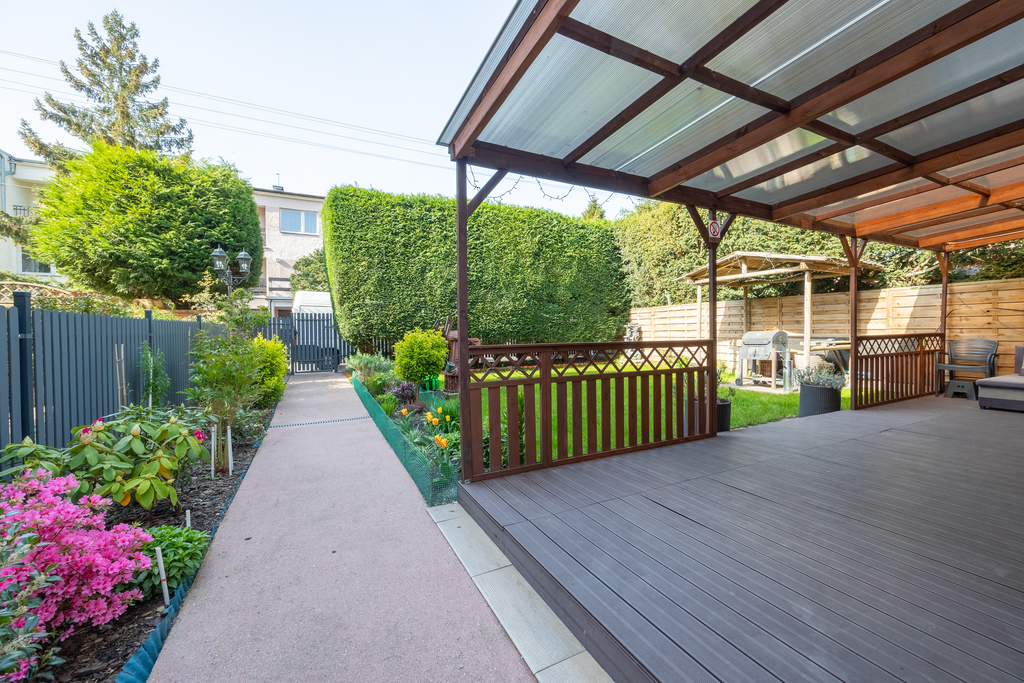 Działka o wielkości 279 m2 z zadbanym ogrodem, tarasem i murowanym grillem.