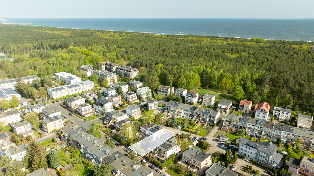 Atrakcyjne położenie w cichej i spokojnej okolicy miasta, blisko lasu i plaży.
