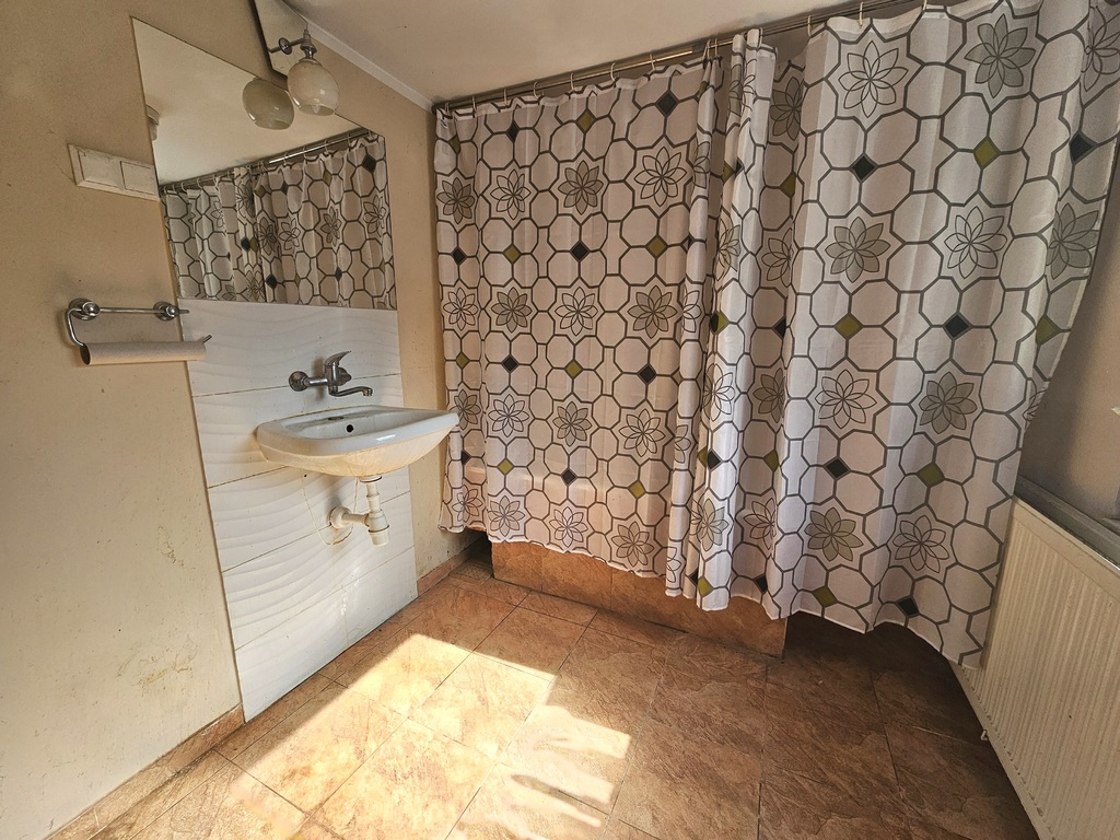 - 3 pokoje, kuchnia, korytarz , schowek pod schodami , na tym poziomie znajduje się również przybudówka mieszcząca łazienkę i WC.