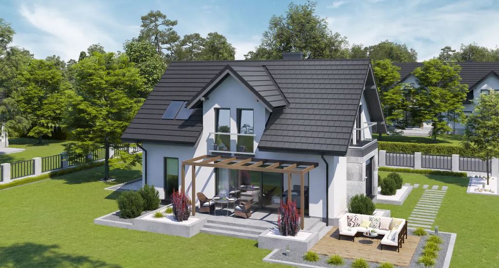 Projekt charakteryzuje się prostą, zwartą bryłą. Idealny dla rodziny 2+2.
