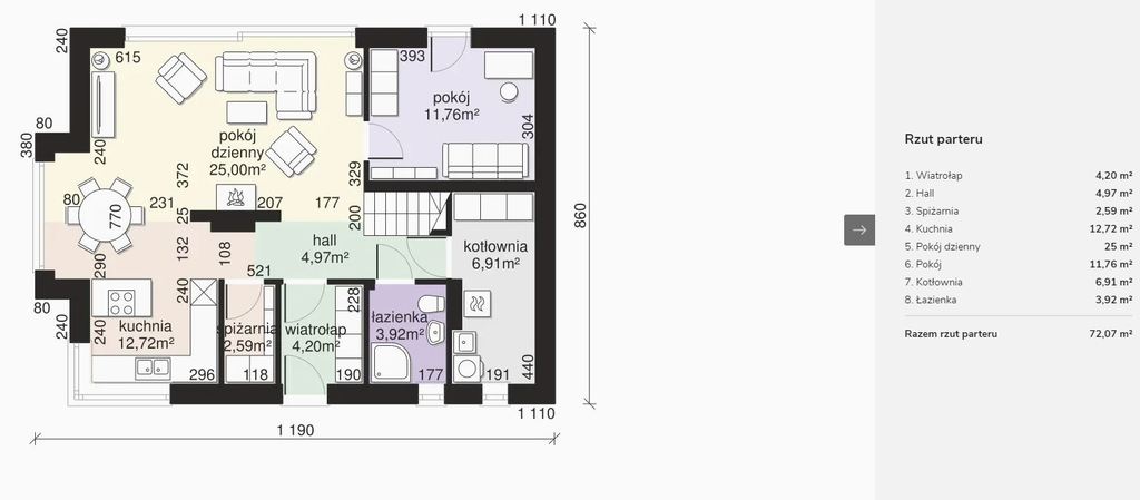 - salon z bezpośrednim wyjściem na taras,