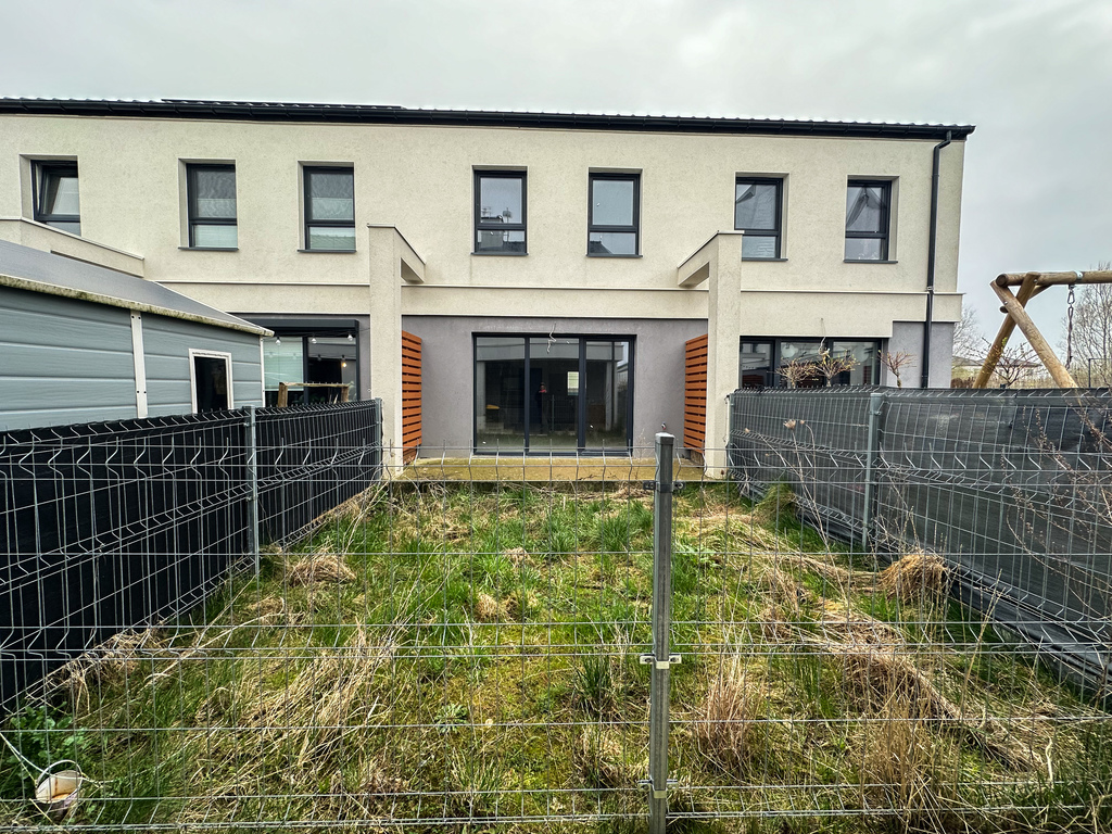 Przynależny ogród o powierzchni do około 50m2 położony jest od strony południowo- wschodniej z wyjściem z salonu, z drugiej strony budynku znajdują się 2 miejsca postojowe (miejsca postojowe są w cenie domu).