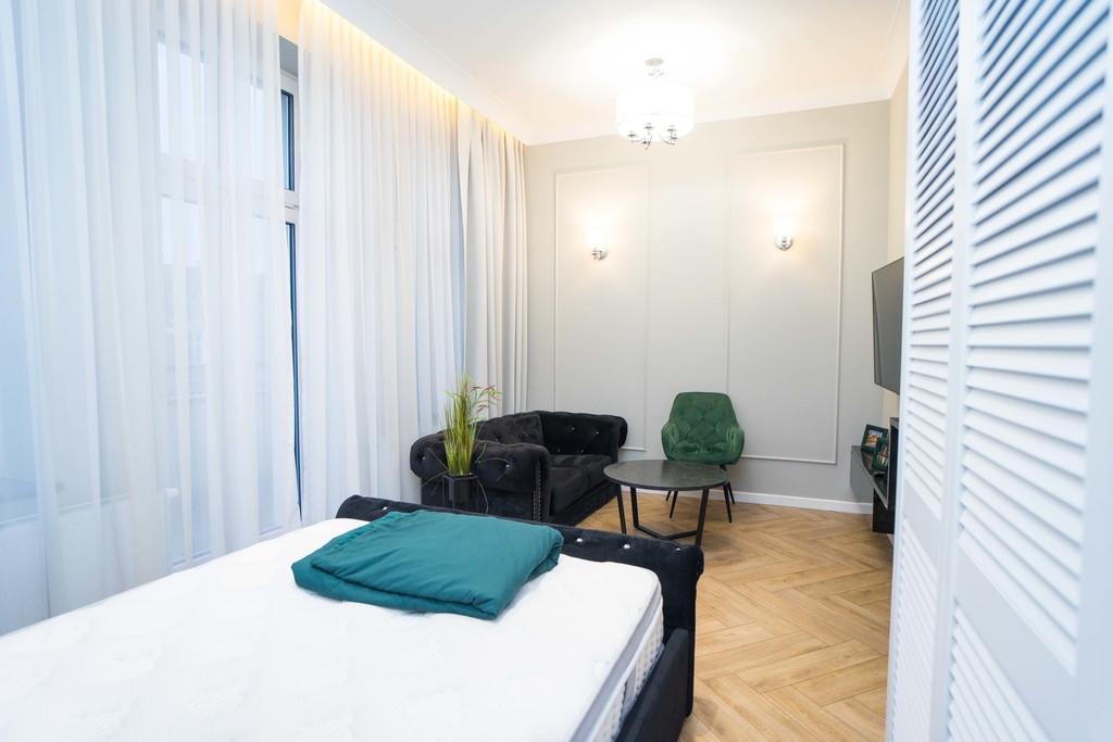 Mieszkanie znajduje się w zabytkowej odrestaurowanej kamienicy z pięknym widokiem na centrum Szczecina.