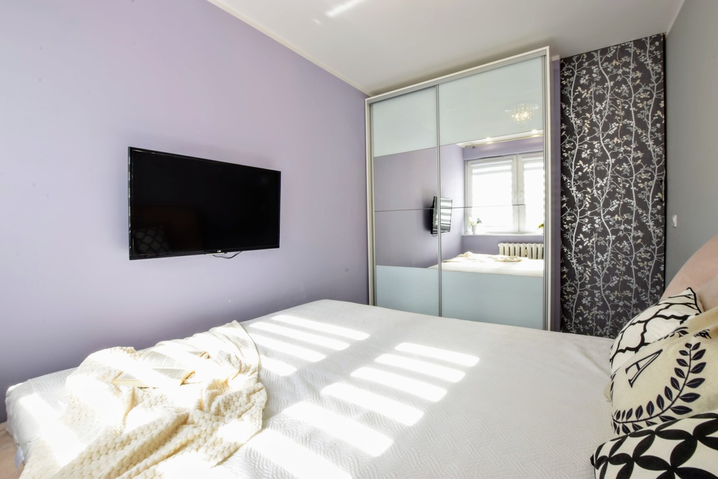 Do sypialni zostały zamontowane drzwi przesuwne.