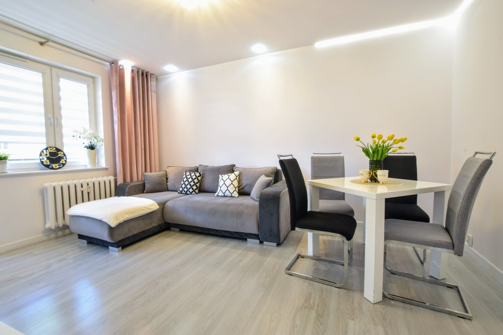 Wszystkie sprzęty AGD oraz meble widoczne na zdjęciach pozostają na wyposażeniu.