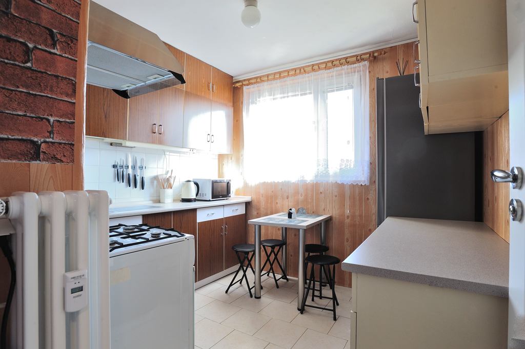 Mieszkanie składa się z trzech osobnych pokoi, łazienki, kuchni oraz korytarza. Jest umeblowane i wyposażone w sprzęty AGD takie, jak lodówka, mikrofalówka, czajnik, okap, kuchenka gazowa oraz pralka.
