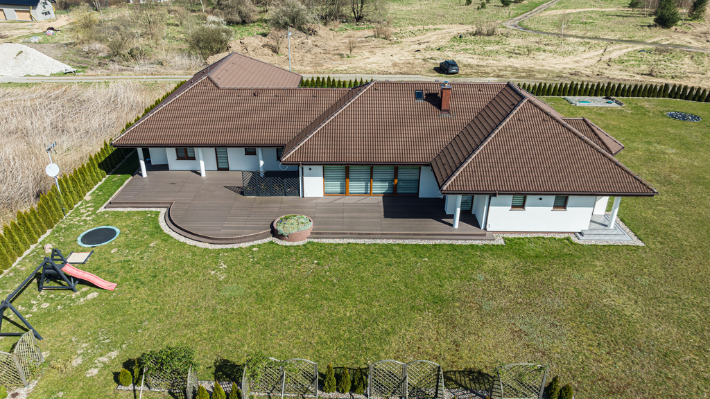 Nieruchomość mogąca służyć za przykład funkcjonalności i perfekcyjnego wykończenia. Pomieszczenia zaaranżowane z ogromną pieczołowitością i dbałością o każdy szczegół przy wykorzystaniu najwyższej jakości materiałów. Zastosowanie wielu udogodnień technologicznych ma na celu komfortowe i ekonomiczne korzystanie z budynku: głębinowa pompa ciepła zasilająca ogrzewanie podłogowe (sterownik do ogrzewania w każdym z pokoi) i podgrzewanie wody, woda ze studni ze stacją uzdatniania wody, przydomowa oczyszczalnia ścieków.