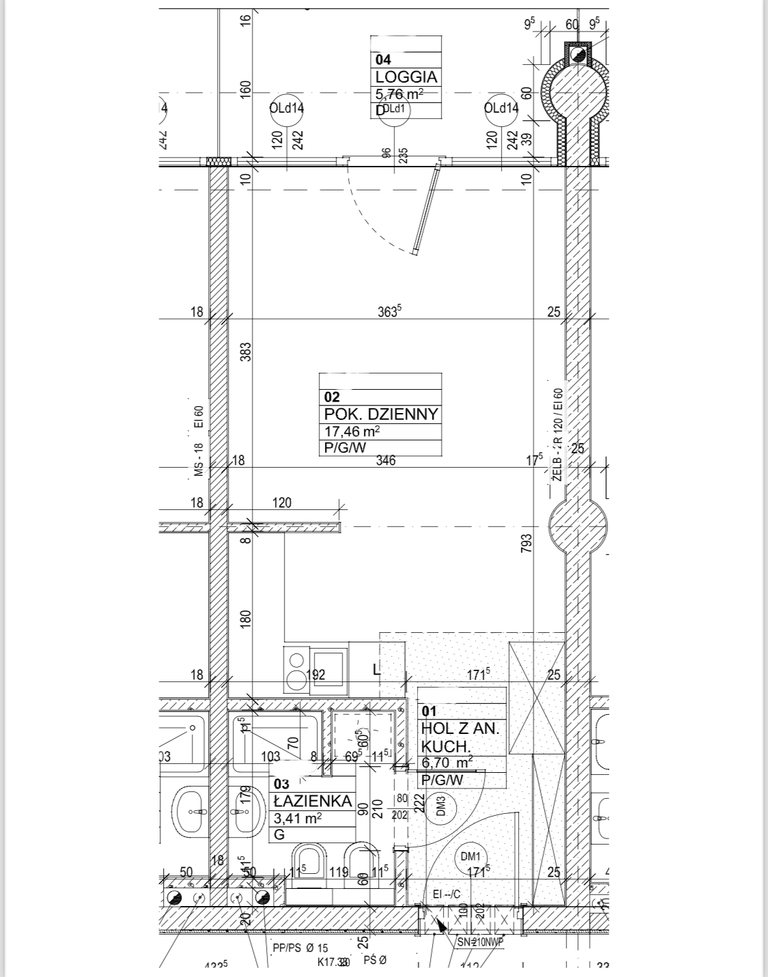 - salonu z wyjściem na loggię (ok. 6 m2)