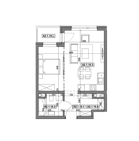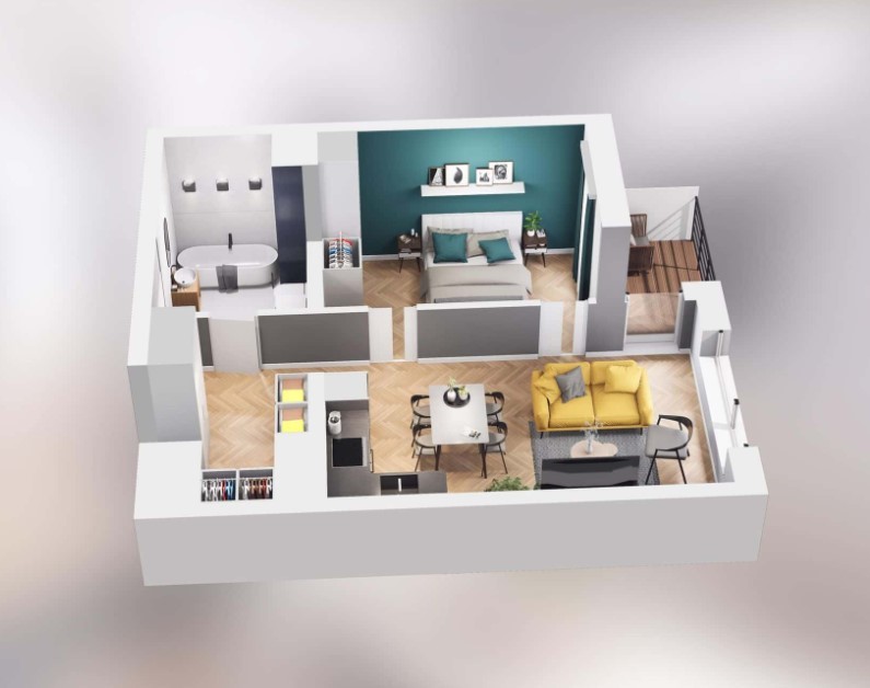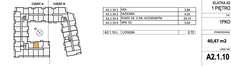 Mieszkanie o powierzchni 40,47m2 z loggią o powierzchni 2,72m2.