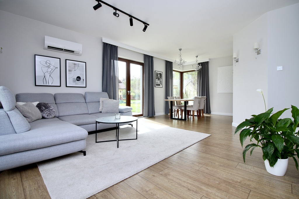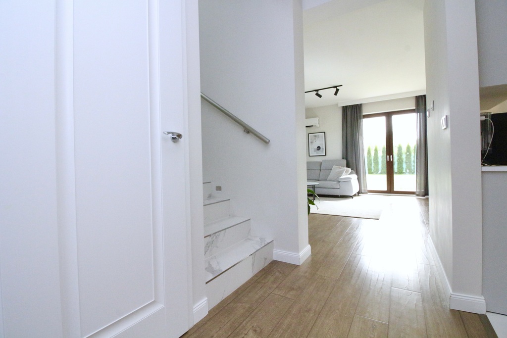 Całość wykończona z niezwykłym wyczuciem oraz gustem. Podczas budowy domu użyto materiałów najwyższej jakości. W domu zamontowany został gruntowy wymiennik ciepła (rekuperacja), monitoring, rolety zewnętrzne klimatyzacja oraz ekonomiczny piec gazowy. Ogrzewanie podłogowe w całej nieruchomości. Woda, kanalizacja i gaz z sieci.