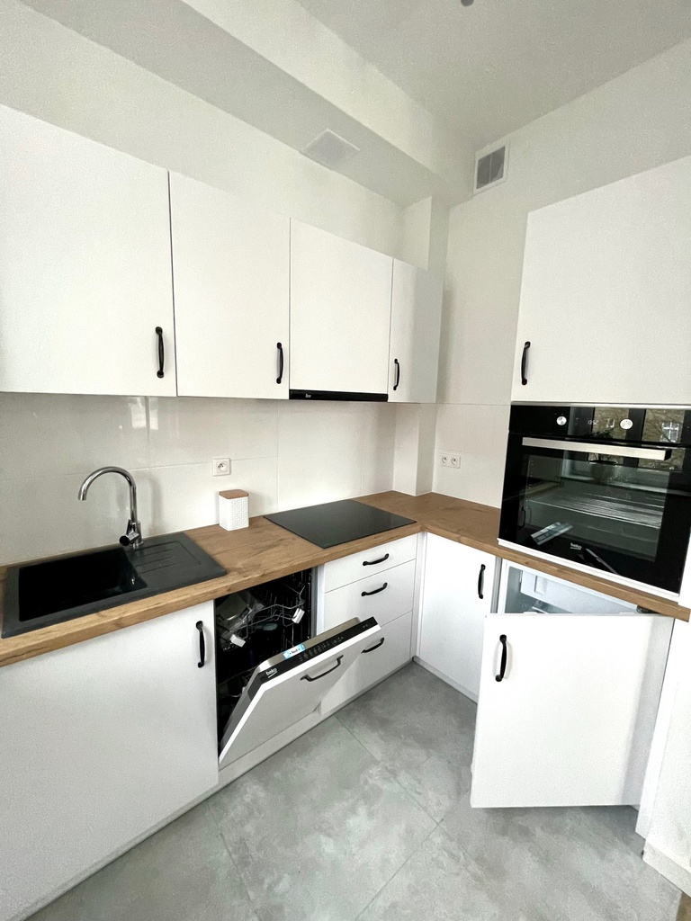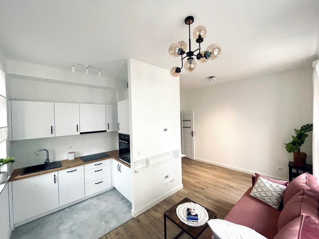 Wyposażone jest w całości w nowe sprzęty AGD m.in lodówka, kuchenka z płytą, zmywarka, okap, pralka, umeblowane i gotowe do zamieszkania.