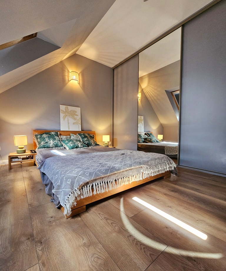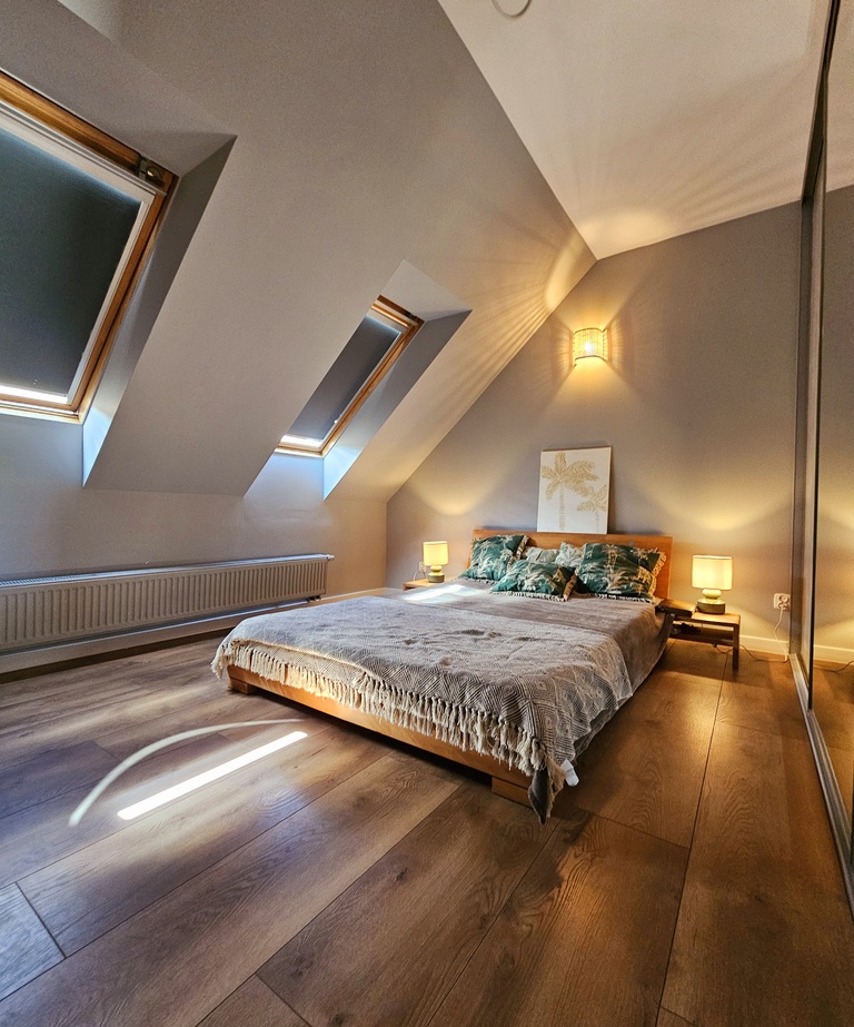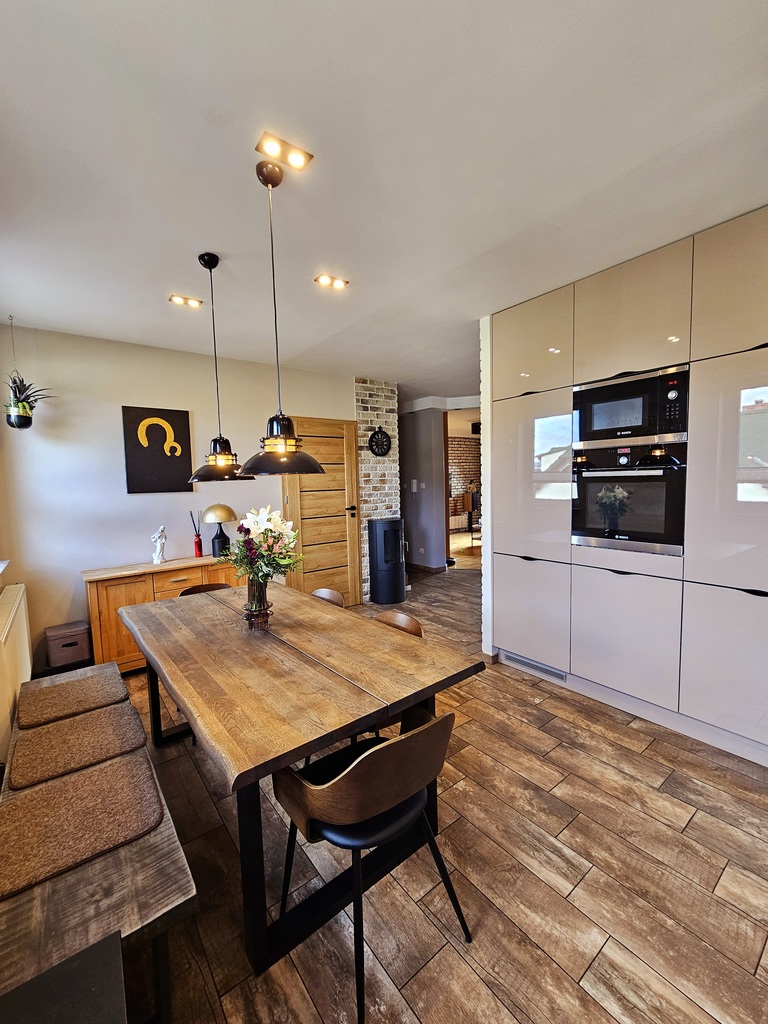 Oferujemy do sprzedania mieszkanie dwupoziomowe na kondygnacji 1,5 budynku z roku 2002 na zamkniętym osiedlu przy ulicy Jolanty na Bezrzeczu. Powierzchnia użytkowa lokalu wynosi 71m2, całkowita około 100m2. Na pierwszym poziomie znajduje się salon z wyjściem na przestronny balkon, kuchnia z jadalnią, sypialnia główna oraz pomieszczenie dodatkowe (aktualnie zaadaptowane na pokój gościnny), przedpokój oraz łazienka; poddasze stanowi dodatkowa sypialnia oraz WC połączone z pralnią. Wnętrze urządzone starannie i gustownie. W cenie pozostaje zabudowa kuchenna wraz ze sprzętem AGD oraz zabudowy stałe. W klatce 4 mieszkania, osiedle zamknięte, z przynależnym miejscem postojowym, dodatkowy parking przy osiedlu. Lokalizacja doskonała. Serdecznie zapraszam na prezentację
