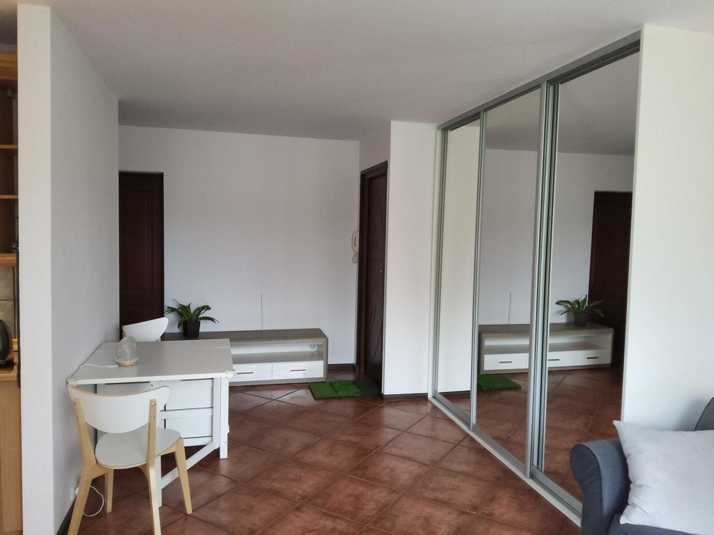 Do wynajęcia mieszkanie usytuowane na 1 piętrze 3piętrowego bloku. Na powierzchni ok 40 m2 znajduje się ok. 20m2 salon z aneksem kuchennym, ok. 10m2 sypialnia i ok 3m2 łazienka z wc. Na podłodze terakota, ściany malowane. Z salonu jest wyjście na ok 3m2 balkon. Mieszkanie jest bardzo czyste, zadbane i komfortowo wyposażone m.in w liczne szafy i schowki. Zapewnione jest podstawowe wyposażenie i niezbędny sprzęt AGD w tym m.in pralka, lodówka, zmywarka. W mieszkaniu jest światłowód. Do mieszkania przynależy piwnica.