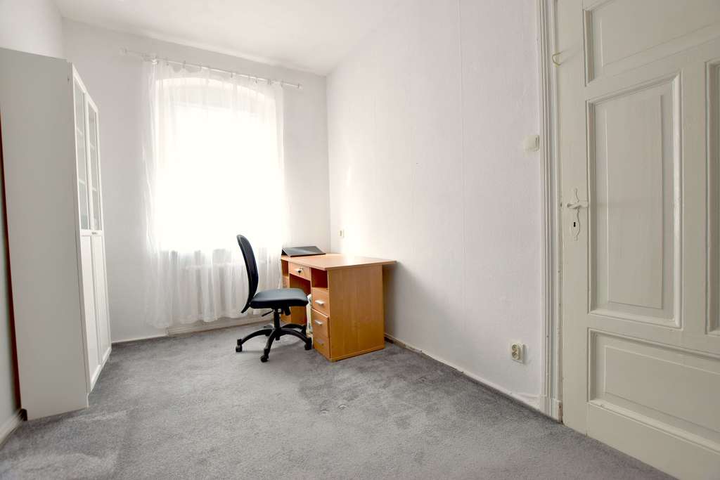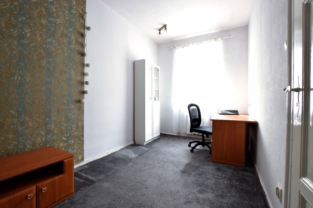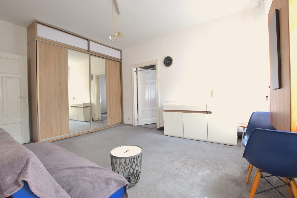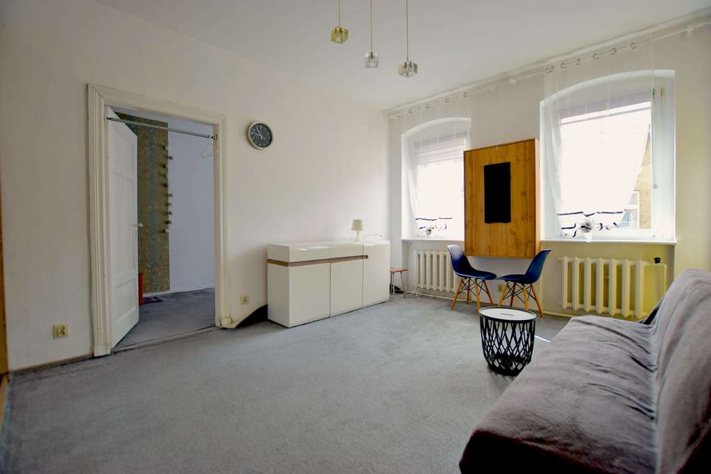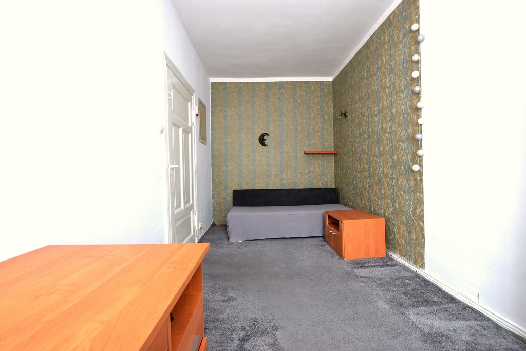 Duży pokój o powierzchni około 20m2, z salonu wejście do mniejszego pokoju (powierzchnia około 12m2) oraz do widnej, samodzielnej kuchni (powierzchnia około 4m2).