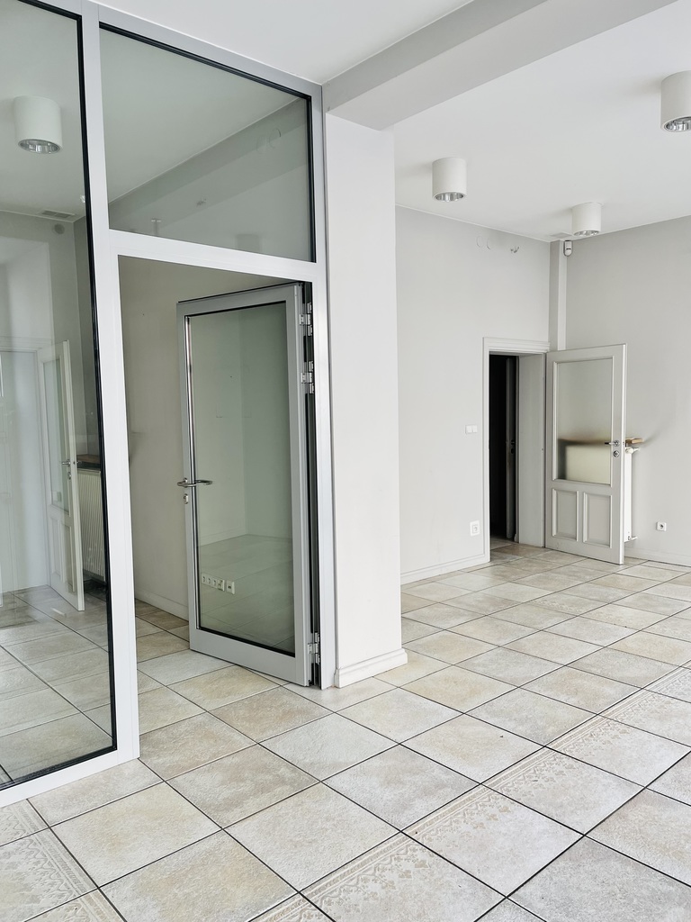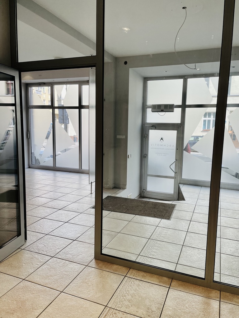 Prezentowana nieruchomość nadaje się pod różnorodne rodzaje działalności, w tym biurową, handlową lub usługową. Na przestrzeni ponad 68 m2 znajduje się przestronna, jasna sala z dużymi witrynami, Dodatkowo na tyłach lokalu zaplecze sanitarne oraz wydzielona przestrzeń  z pełnowymiarowymi oknami od podwórza, z powodzeniem może pełnić rolę biura lub magazynu. W cenie mogą pozostać, widoczne na zdjęciach, szafki biurowe, meble kuchenne oraz oświetlenie.