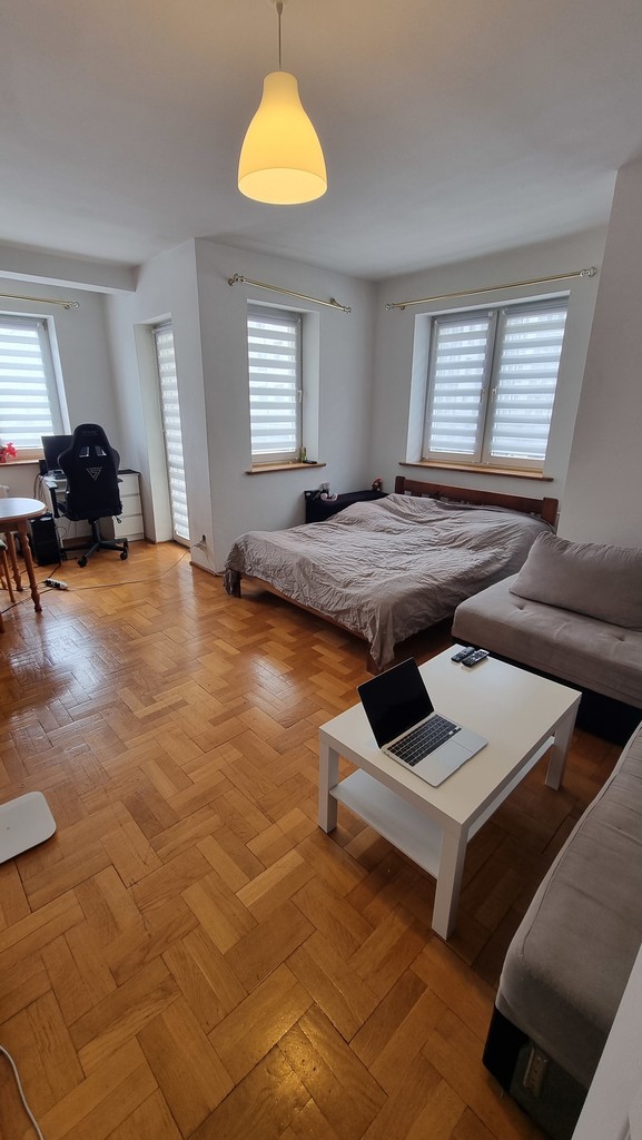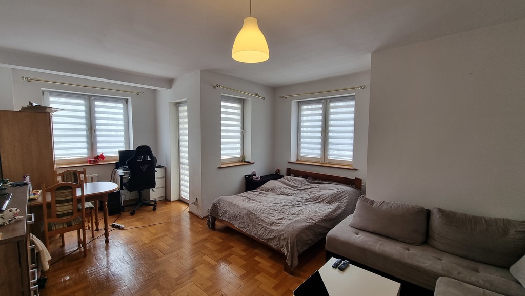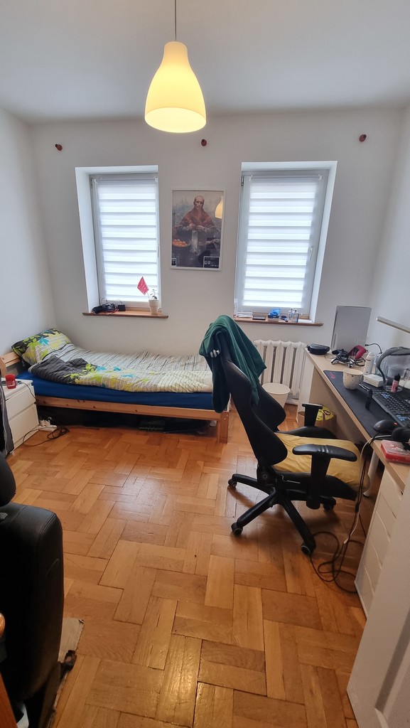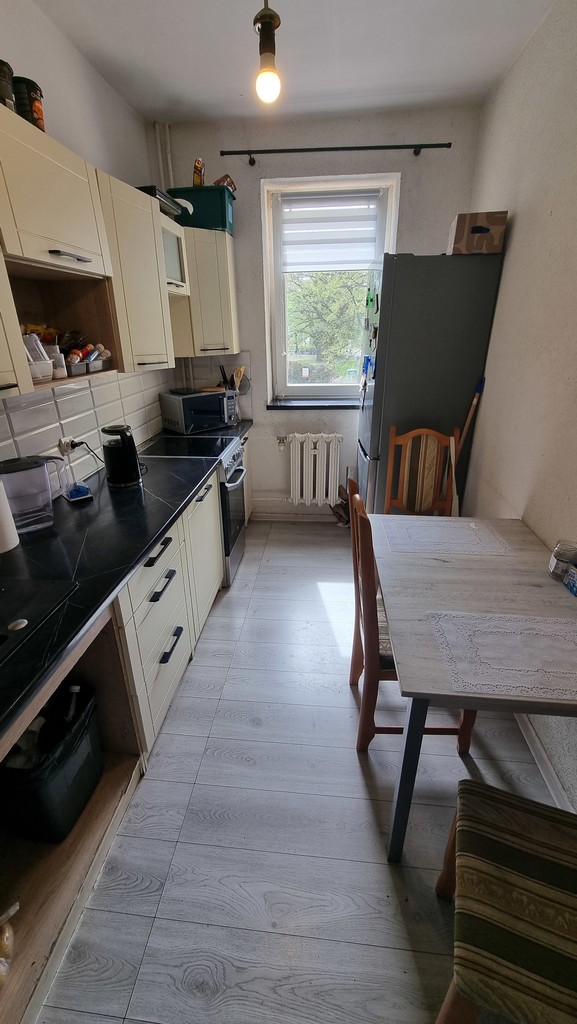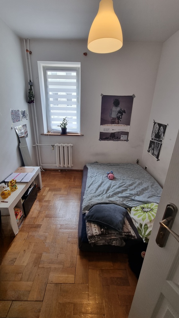 Duży salon o pow. ok. 26 m2 z wyjściem na balkon oferuje piękny widok na otwartą, zieloną przestrzeń. Pozostałe pokoje o pow. ok. [13; 12,5, 9,7] m2. Kuchnia jest widna, wygodna i wyposażona w meble oraz sprzęt AGD. Dodatkowo, do dyspozycji jest piwnica o powierzchni 6,60 m2 oraz prawo do wyłącznego korzystania z części korytarza o powierzchni 3,87 m2. Mieszkanie do własnej aranżacji - malowane ściany, panele w kuchni, terakota w łazience oraz parkiet w pokojach oraz przedpokoju. Łazienka z wc wyposażona jest w wannę i umywalkę, a dodatkowo druga osobna toaleta zapewnia komfort mieszkańcom. Dodatkowo pomieszczenie gospodarcze o pow. ok. 3,6 mogące pełnić funkcję garderoby. Centralne ogrzewanie i ciepła woda z sieci miejskiej. Czynsz 886 zł (z funduszem remontowym; bez zaliczek na ciepłą i zimną wodę).