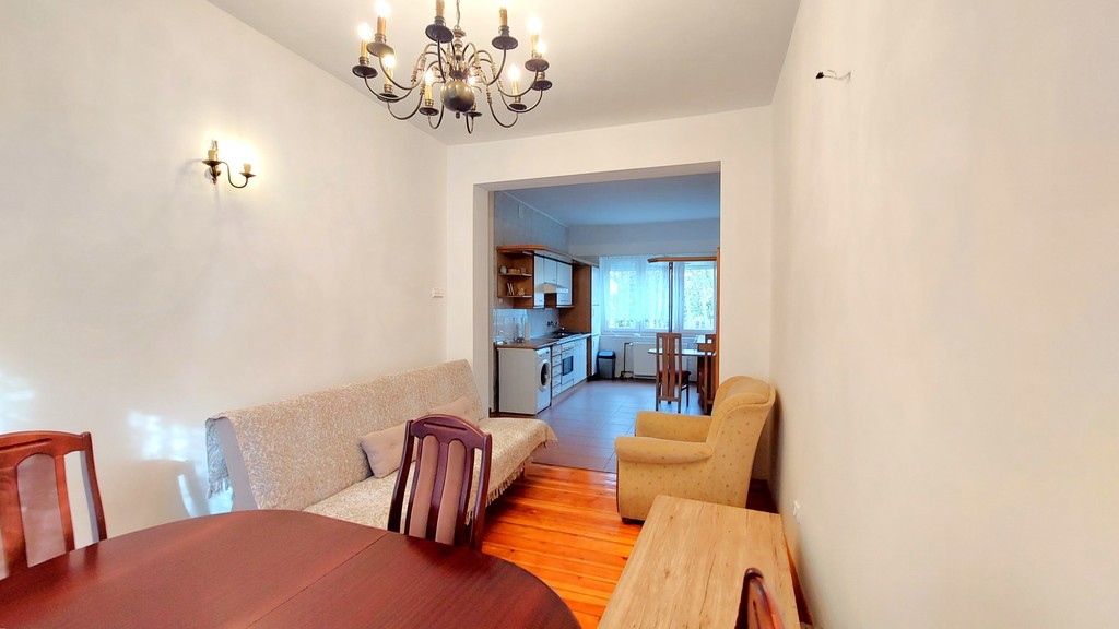 Mieszkanie jest w pełni umeblowane, co widać na załączonych zdjęciach.