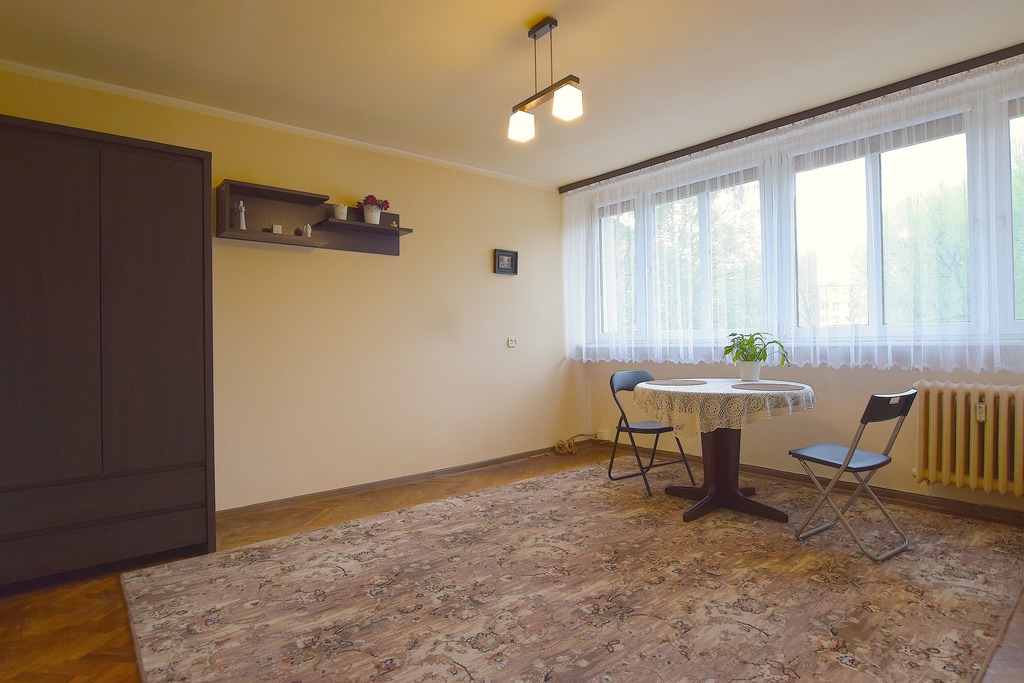 Mieszkanie rozkładowe, salon o powierzchni około 17m2 z wejściem do samodzielnej kuchni (istnieje prosta możliwość połączenia kuchni z salonem), sypialnia o powierzchni około 9m2 z wyjściem na balkon, łazienka razem z wc z kabiną prysznicową w glazurze i terakocie.
