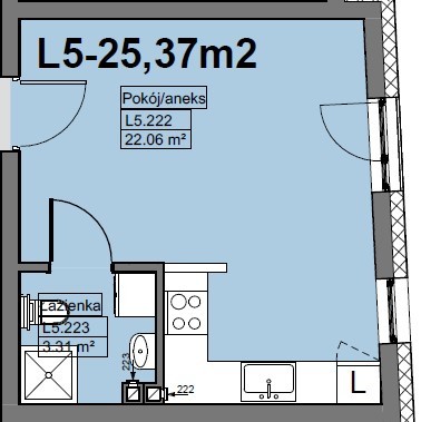 - salon z aneksem kuchennym - pow. 22,06 m2,