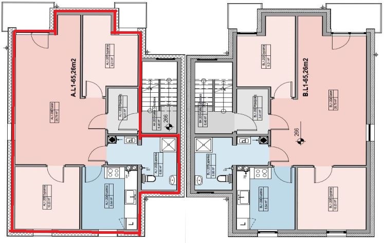 Lokal mieszkalny o pow. użytkowej 65,26 m2 składa się z następujących pomieszczeń: