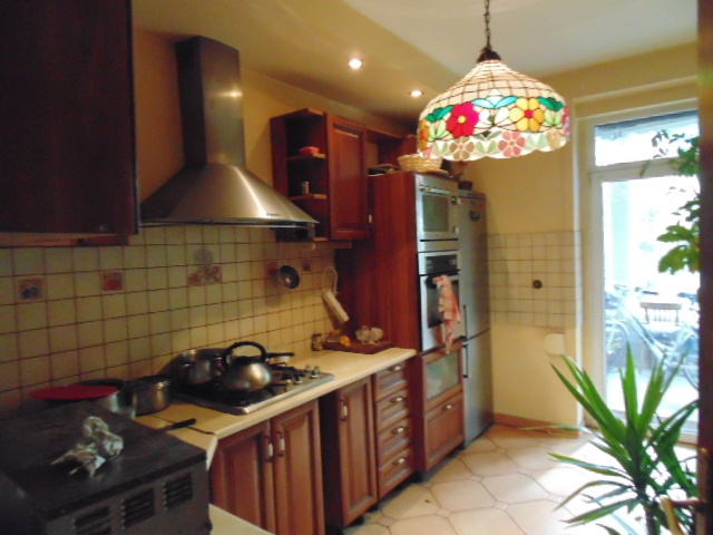 Na parterze znajduje się przestronna kuchnia o po.ok. 10m2 z wyjściem na ogród zimowy(w trakcie remontu i wykańczania).Salon z kominkiem o pow.ok. 22m2 z wyjściem na taras i z bezpośrednim zejściem do przytulnego ogrodu.Z salonem połączony jest przesuwnymi drzwiami drugi pokój o pow.ok. 16m2.Na parterze znajduje się dodatkowo wc. oraz wiatrołap.