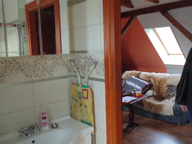 Poddasze jest również zagospodarowane i i tu znajduje się przytulne mieszkanko typu studio z aneksem kuchennym , łazienka z kabiną prysznicową.