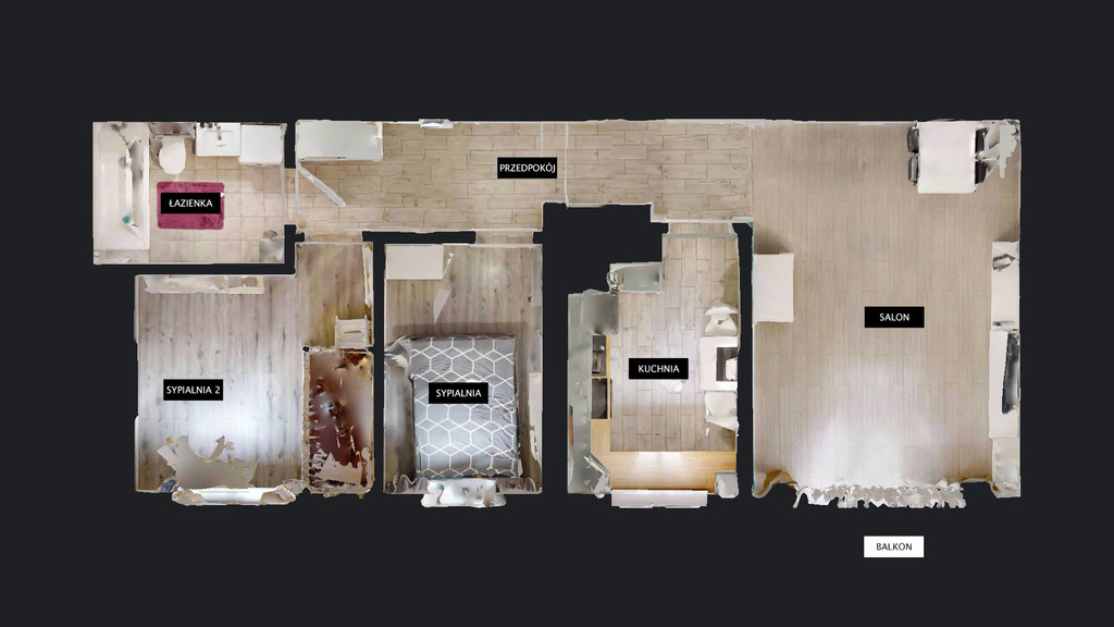 x salon 19,72 m2 z wyjściem na balkon 4,20m2