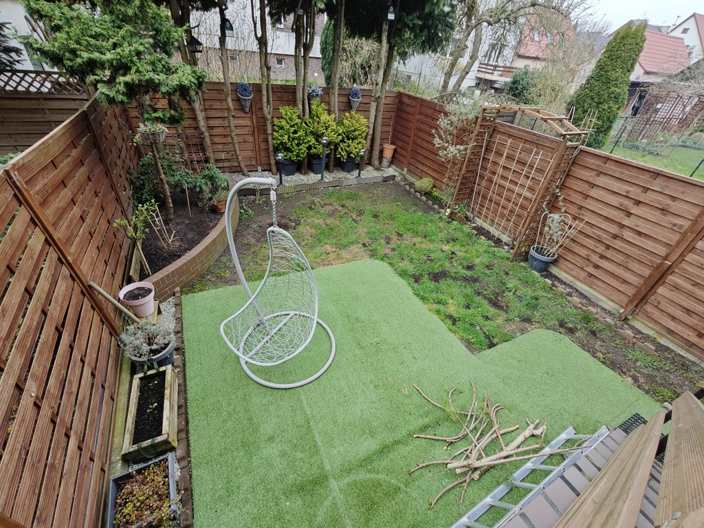 Nieruchomość posadowiona jest na działce o powierzchni 147m2, co zapewnia prywatność oraz łatwą konserwację. Z salonu mamy wyjście na słoneczny taras i zejście do kameralnego ogródka.